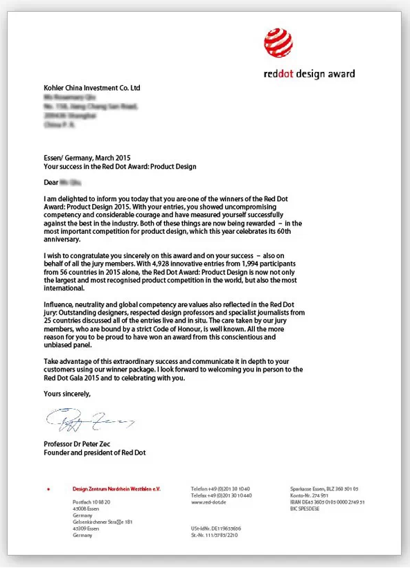 2015年,科勒憑四款廚衛產品雙獎傍身,其中清舒寶智能坐便蓋Bidet seat C3-150榮獲iF設計獎,柏詩Composed、艾非Avid榮獲紅點獎,進一步展現了科勒在工藝設計上的不斷創新、追求^,以及^廚衛潮流的品牌實力。