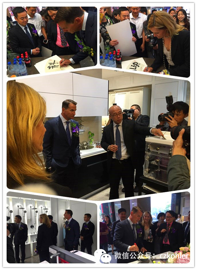 開業(yè)慶典儀式正式開始前,大衛(wèi)·科勒先生、勞拉·科勒女士參觀了設(shè)計體驗中心,期間為藝術(shù)家書法作品提名,還在一樓櫥柜展廳小展了一下廚藝!對科勒設(shè)計體驗中心贊許有加!